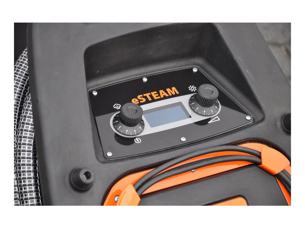 eSTEAM легко управляется. Благодаря короткому времени прогрева и автоматизированному процессу пуска и отключения работа осуществляется быстрее. Автоматизация пуска/отключения позволяет также избежать неисправностей аппарата, которые могут возникнуть из-за некорректного выключения. Аппарат оснащается удобными для пользователя стандартными принадлежностями: панелью управления с органическим светодиодным дисплеем, информацию с которого легко считывать даже при ярком солнечном свете. Смотровое окошко позволяет контролировать производство тумана, что удобно, когда конца шланга не видно. Электровентилятор имеет плавную регулировку, благодаря чему количество подаваемого тумана можно точно подстроить под любую рабочую ситуацию.